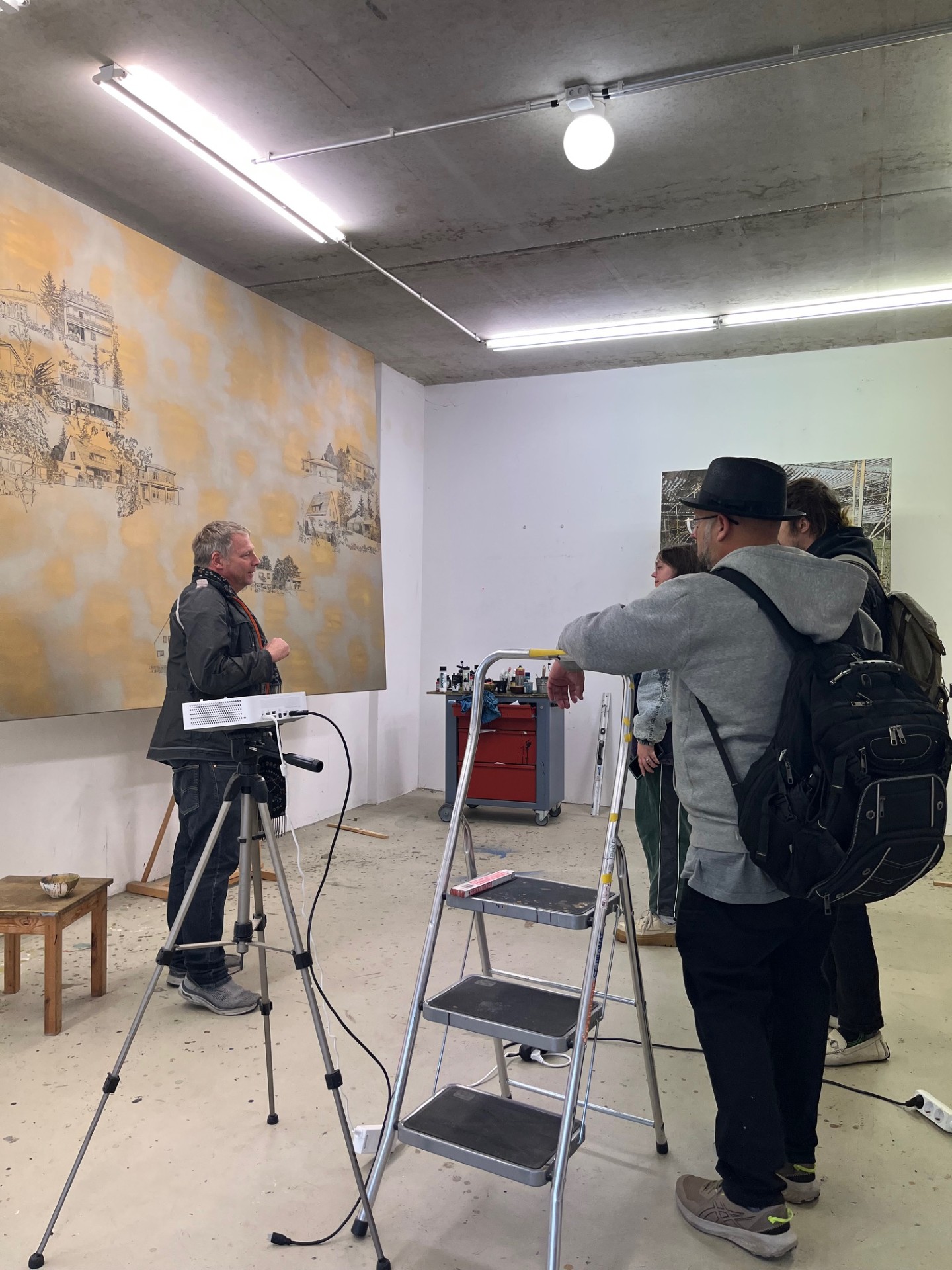 On Monday, September 22, 2025, the 2nd-year MFA cohort had the pleasure of welcoming photographer Kai Schmidt to the studios for a photography workshop! Kai is a graduate of the Kunstakademie in Düsseldorf and a former pupil of our very own Stefan Kürten. Kai spent a full day with us in the studios, schooling us on various photography considerations, so that we can document our work via the camera. There is no doubt that the contemporary artist must be concerned with photography when applying for residency, open call, etc.