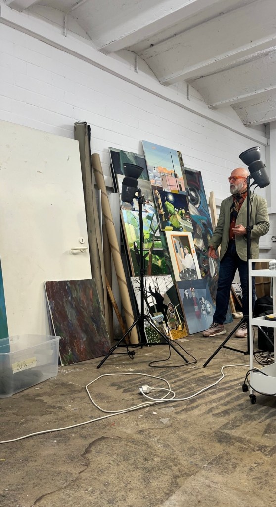 On Monday, October 20, 2025, the 2nd-year MFA cohort visited the studio of our very own Stefan Kürten. As studying artists, it is always useful to be able to get into the mind of a professional visual artist. We were able to ask questions, hear stories, and learn some artistic wisdom from Stefan. Visiting Stefan’s studio gave us a greater insight into his history as an artist, giving us a chance to see different works made over the years.