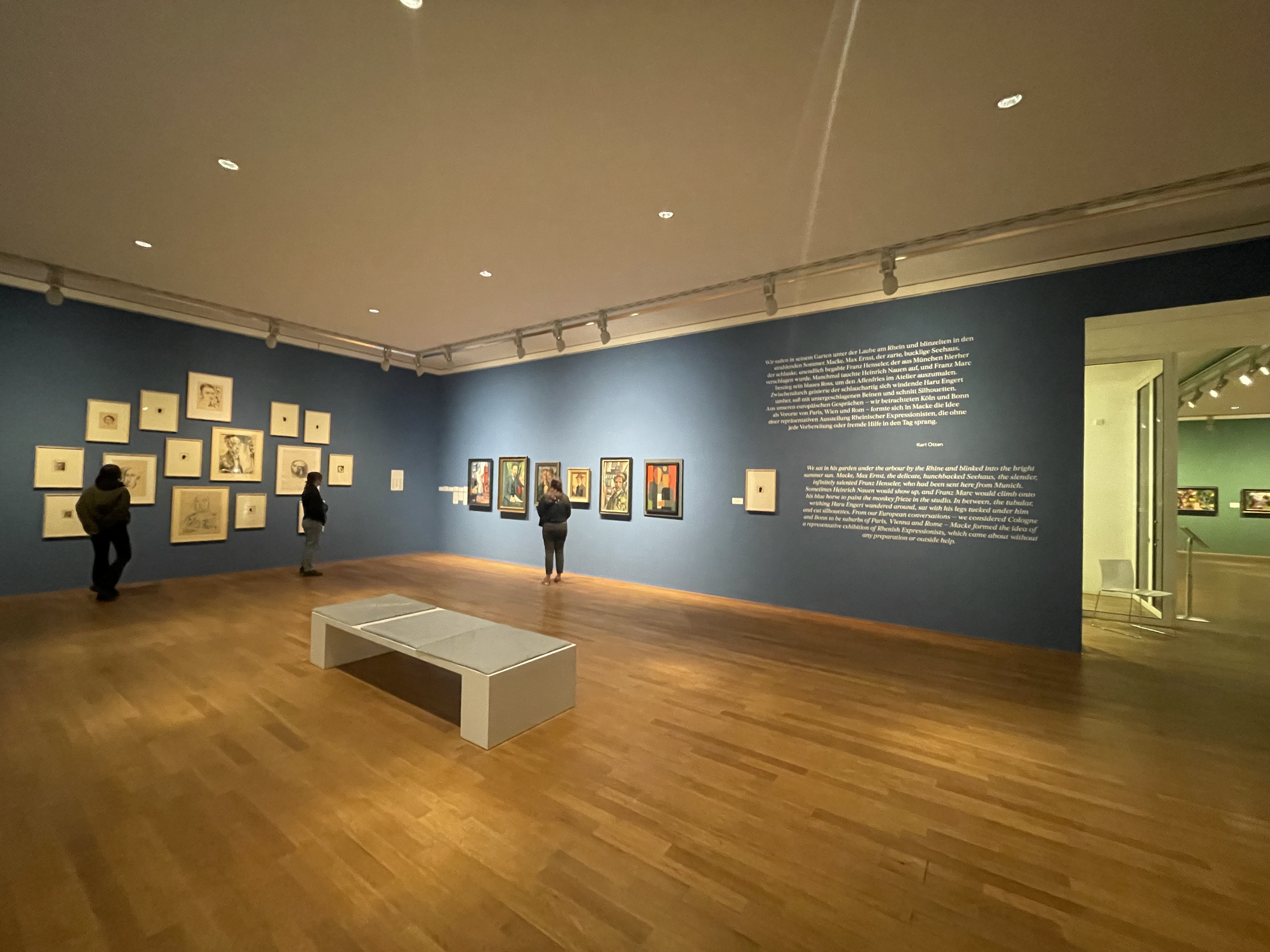 This week, Jutta & the first year grads visited the Bonn Kunstmuseum, a short train ride from Dusseldorf. We met two museum curators and got a private tour of MƎTAATEM, an exhibition by painter & multi-disciplinary artist Kerstin Bratsch. We also got to stay after the visit for the opening of a the new exhibition showing work by french artists Tohé Commaret, Sarah-Anaïs Desbenoit and Pol Taburet.
