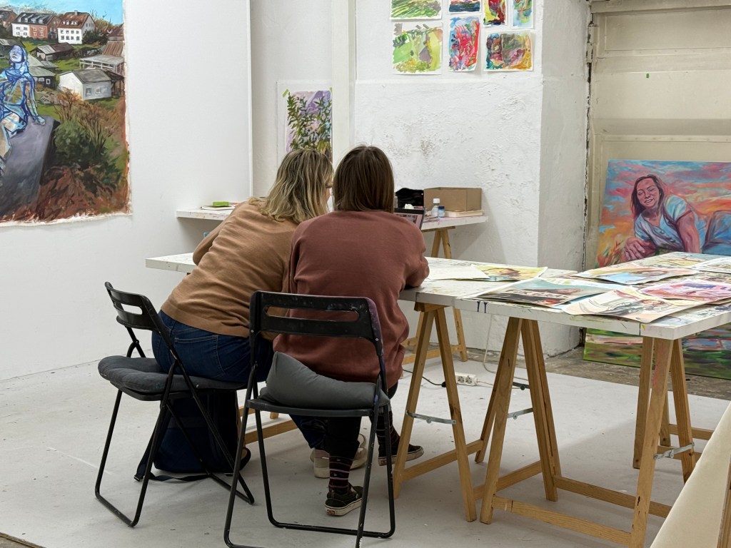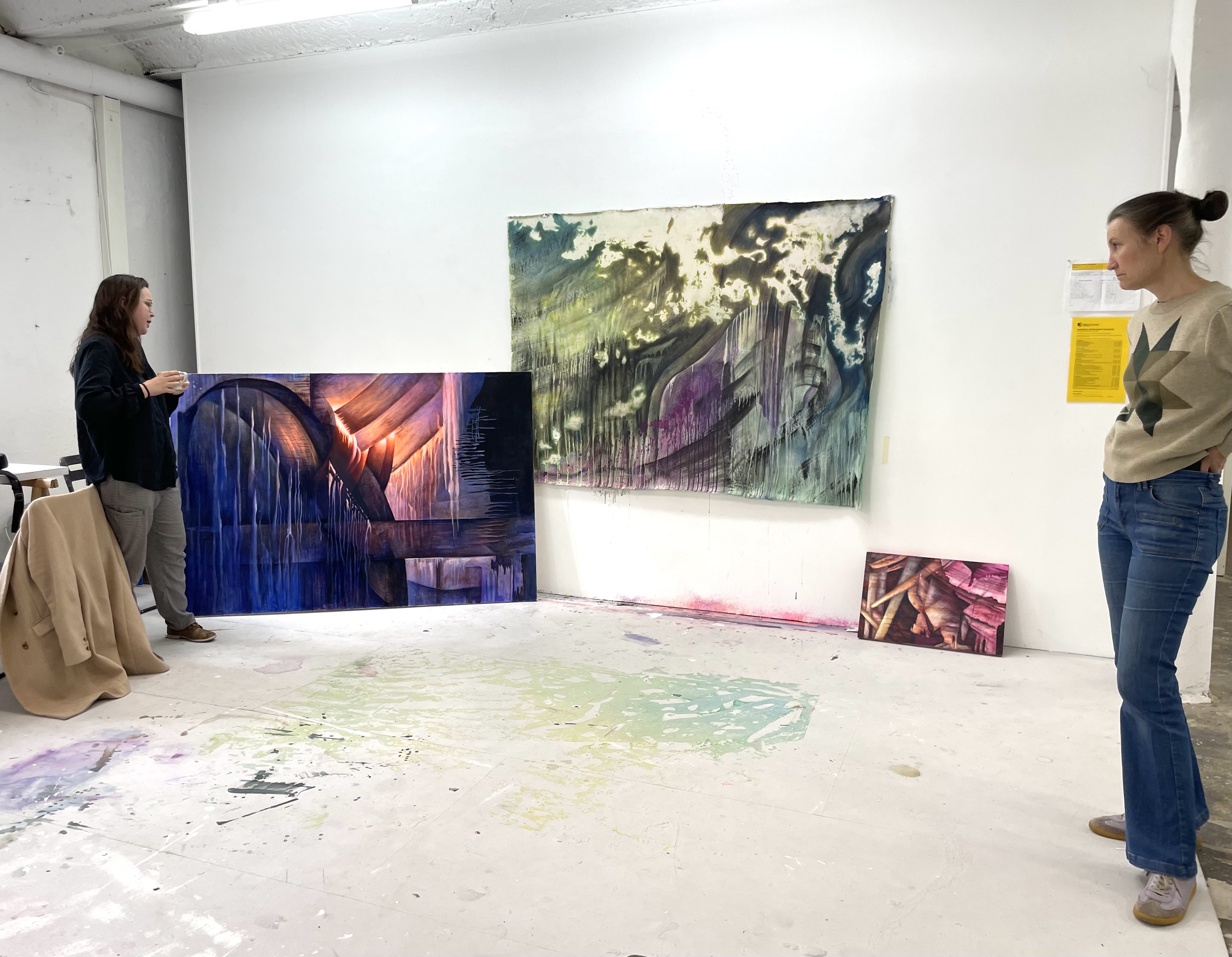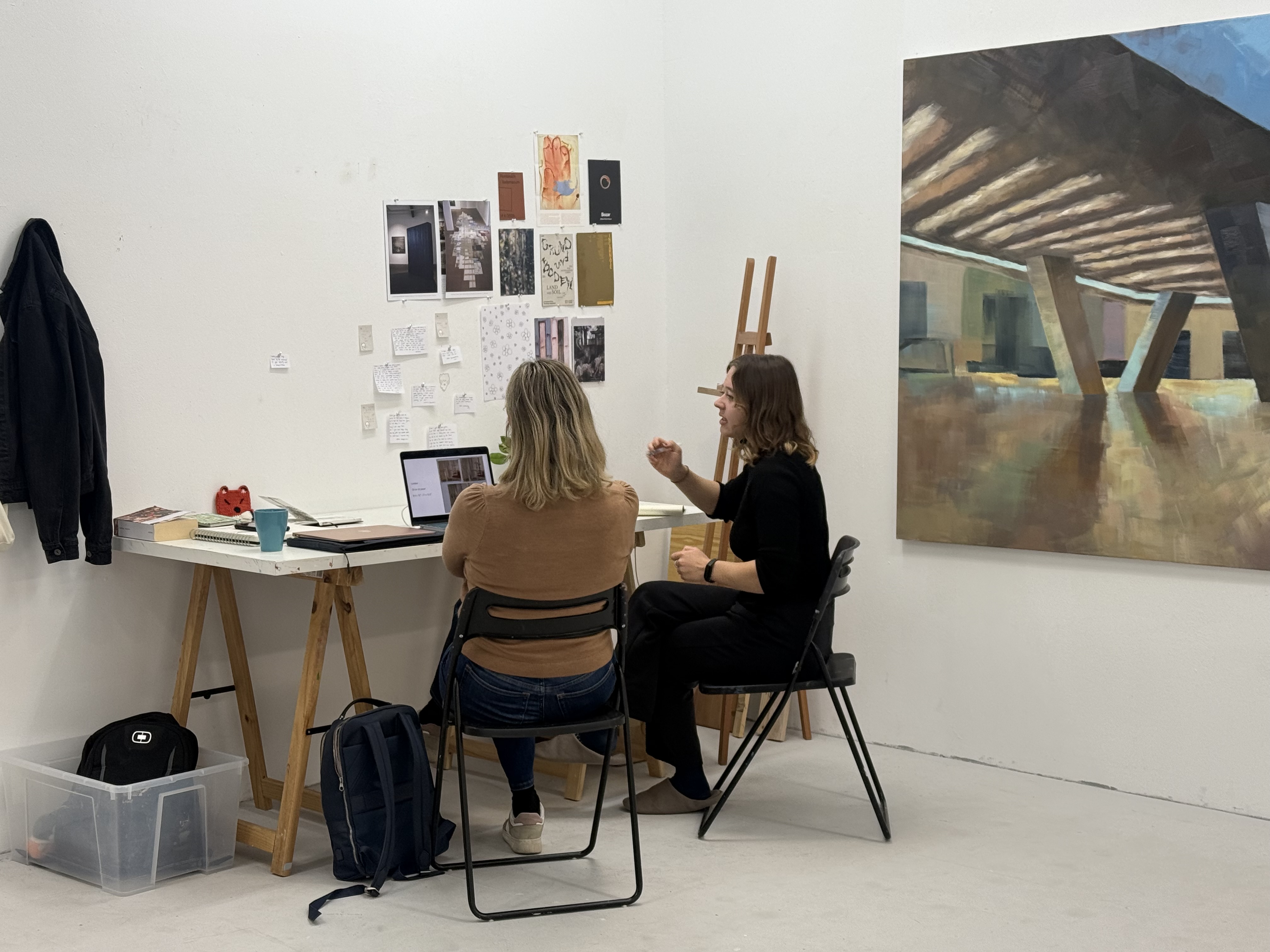 Last week we had a studio visit from the director and curator of the Neue Galerie Gladbeck, Sabine Schmidt. We met Sabine earlier in the week at the Gladbeck gallery’s opening of the exhibition: How many do you see? by German abstract painter Aneta Kajzer.