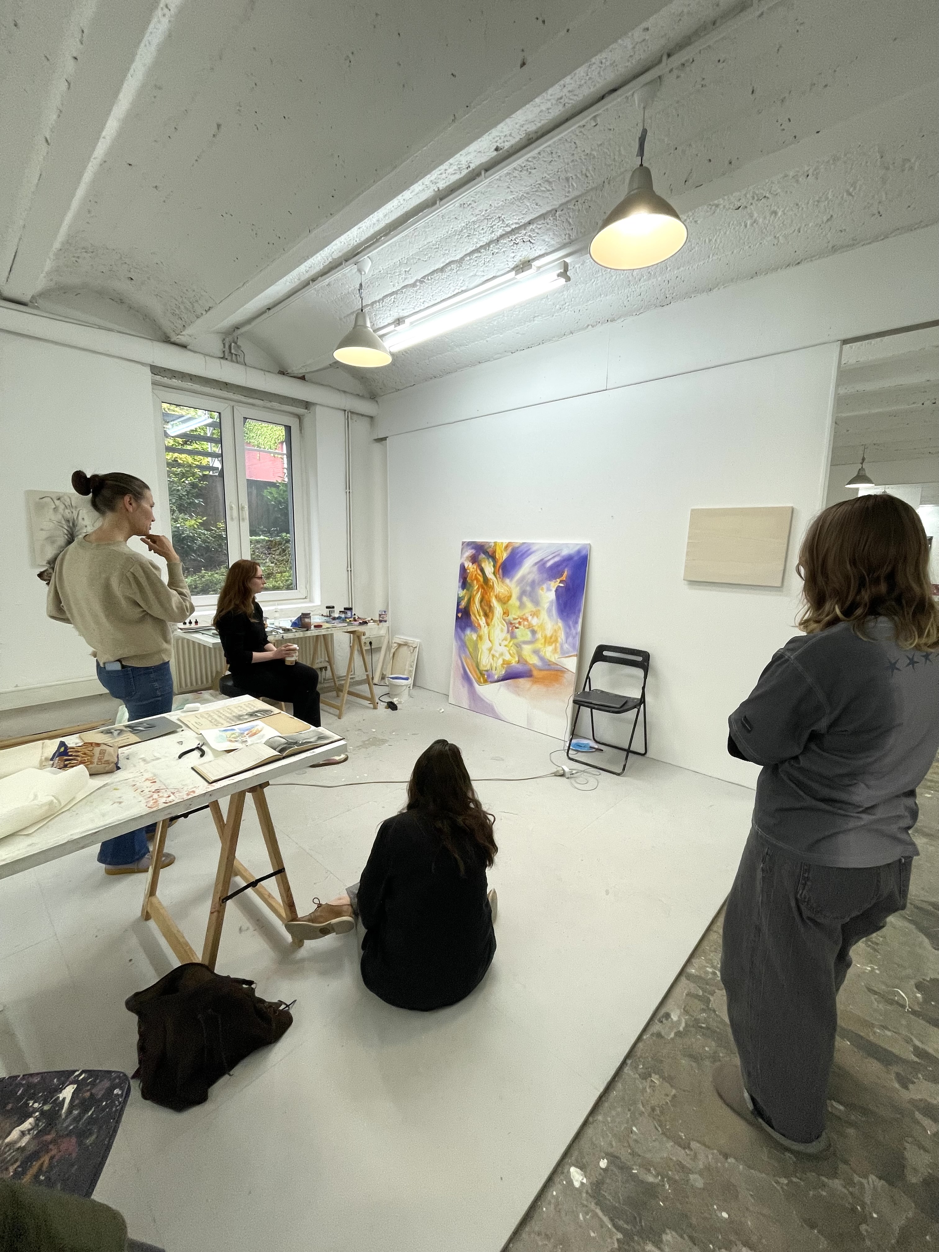 The first year grads are three weeks into the semester in Düsseldorf! We’re enjoying the abundant studio time in our creative den. The studios are well lit and spacious, easily accessible with public transport. The studio kitchen and materials room are replete with tea and art supplies (and even a bike!) from the previous grads, which we greatly appreciate!